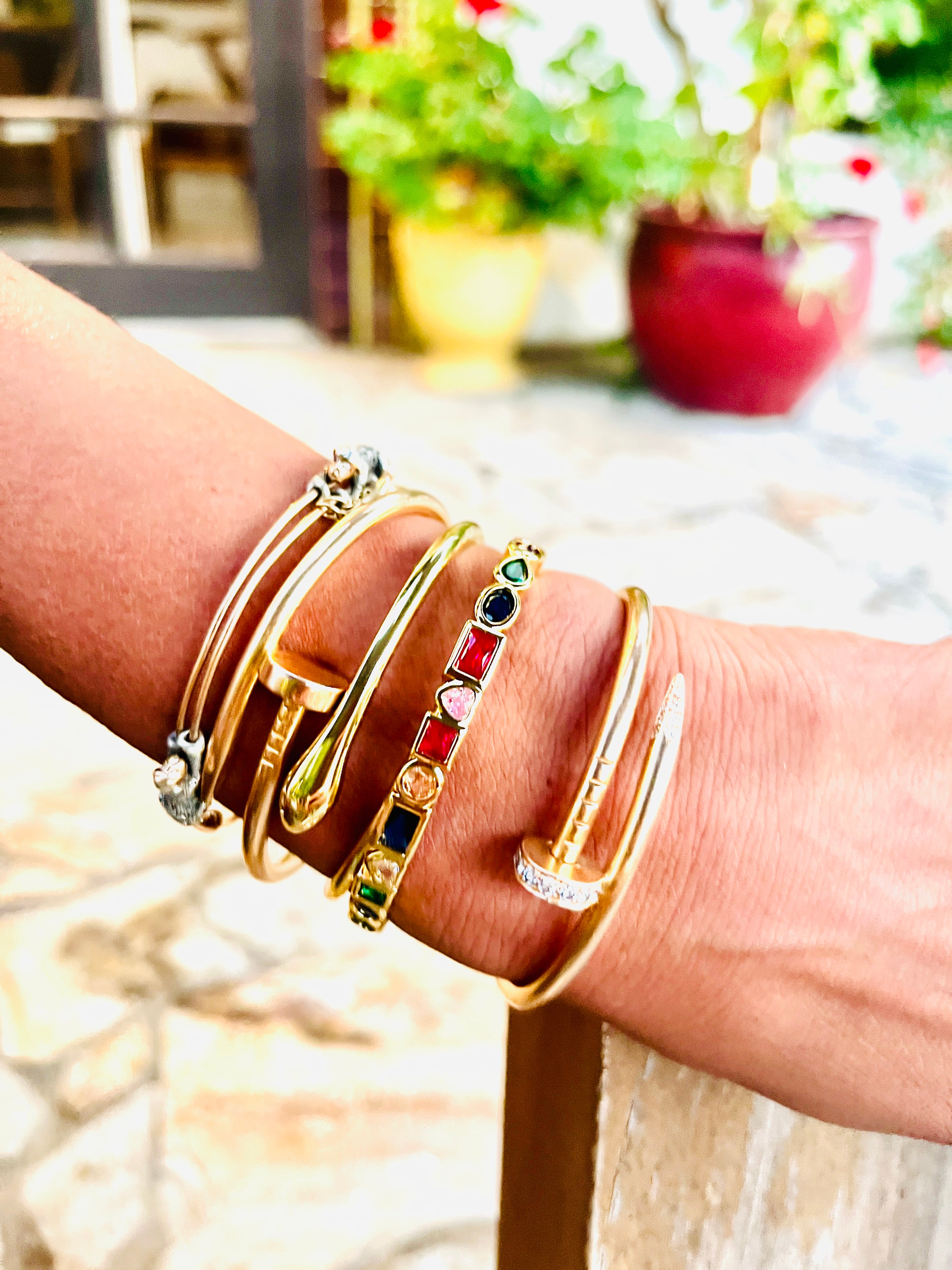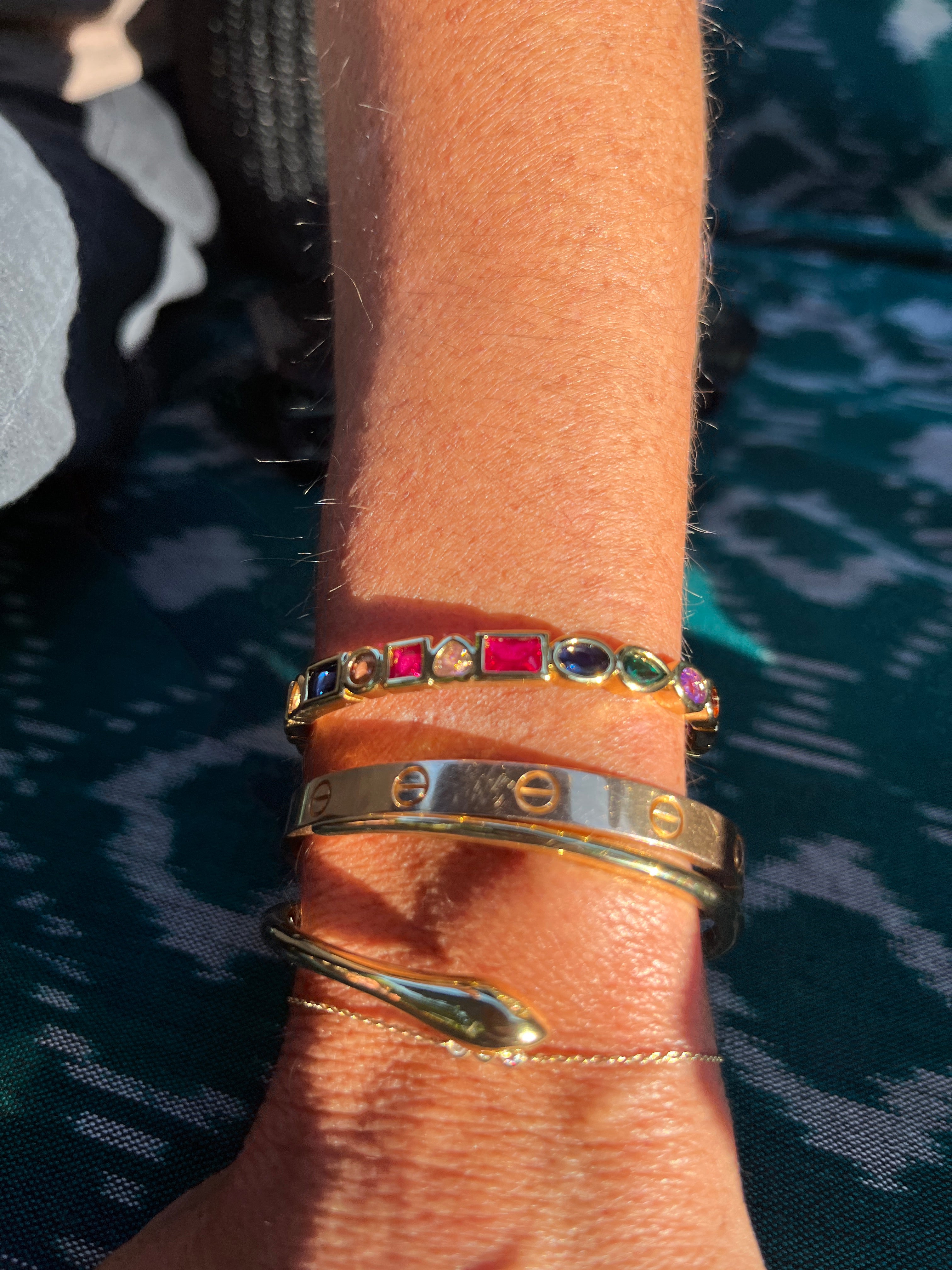Goody Gumdrops cuff. Totally fun and totally adjustable. Variety of shapes and colors shimmer away in your stack or alone. 18k vermeil, so never take it off!!!