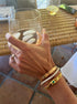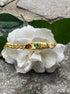 This ID bracelet has an emerald heart in the middle flanked by a garnet and a yellow citrine. If you have a request of stones, I can make you whatever you want. Available in 14k or this one which is vermeil over sterling. It is indeed a fun little number