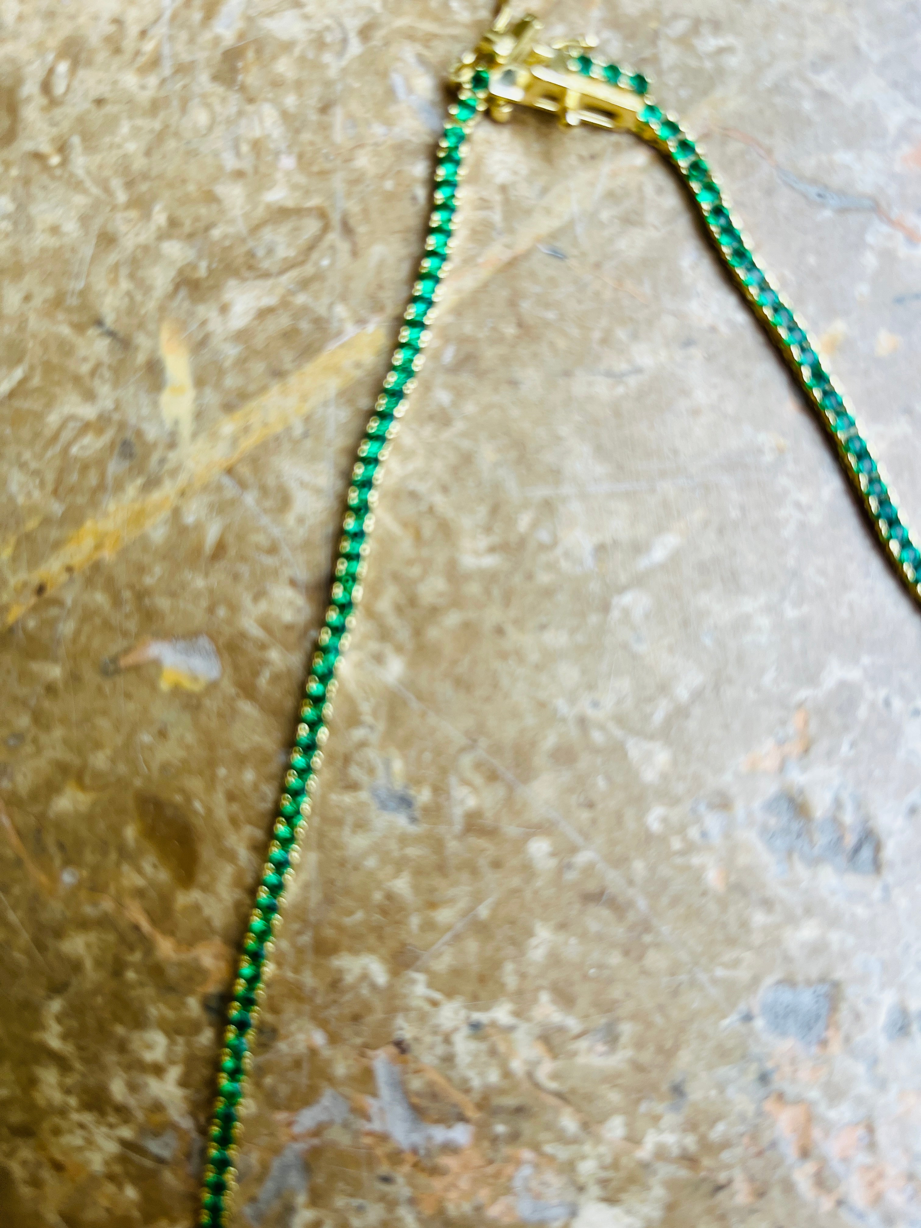 16” of green goddess feels set in 14k gold