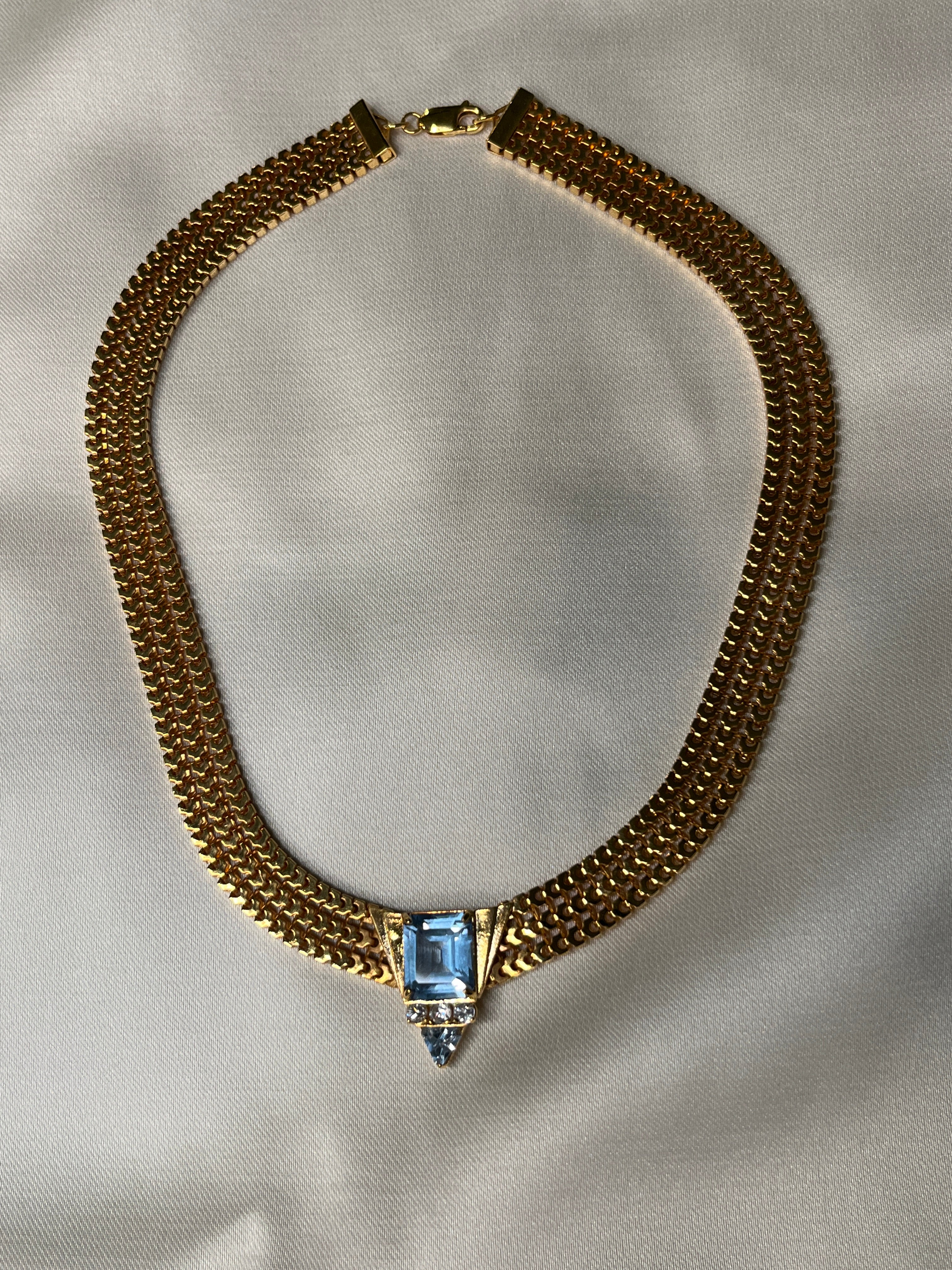 Vintage statement necklace can’t wait to join your collection. She’s 18k gold vermeil with a true mined blue topaz.